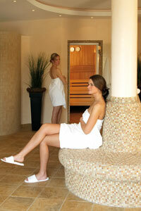 Relaxen Sie in der Saunalandschaft mit Finnischer Sauna und Dampfbad und tanken Sie Kraft im Ruheraum mit Blick auf die Gartenanlage.